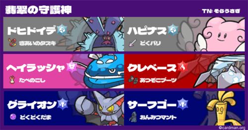 S17お疲れ様でした。29日に瞬間2ロム1桁に行ったりと調子は良かったですが最後の伸びについていけませんでした。 【目次】 【コンセプト】 【構築経緯】 【構築の要点】 【構築紹介】 ①ドヒドイデ@きあいのタスキ(再生力、腕白) ② ハピナス@どくバリ(自然回…